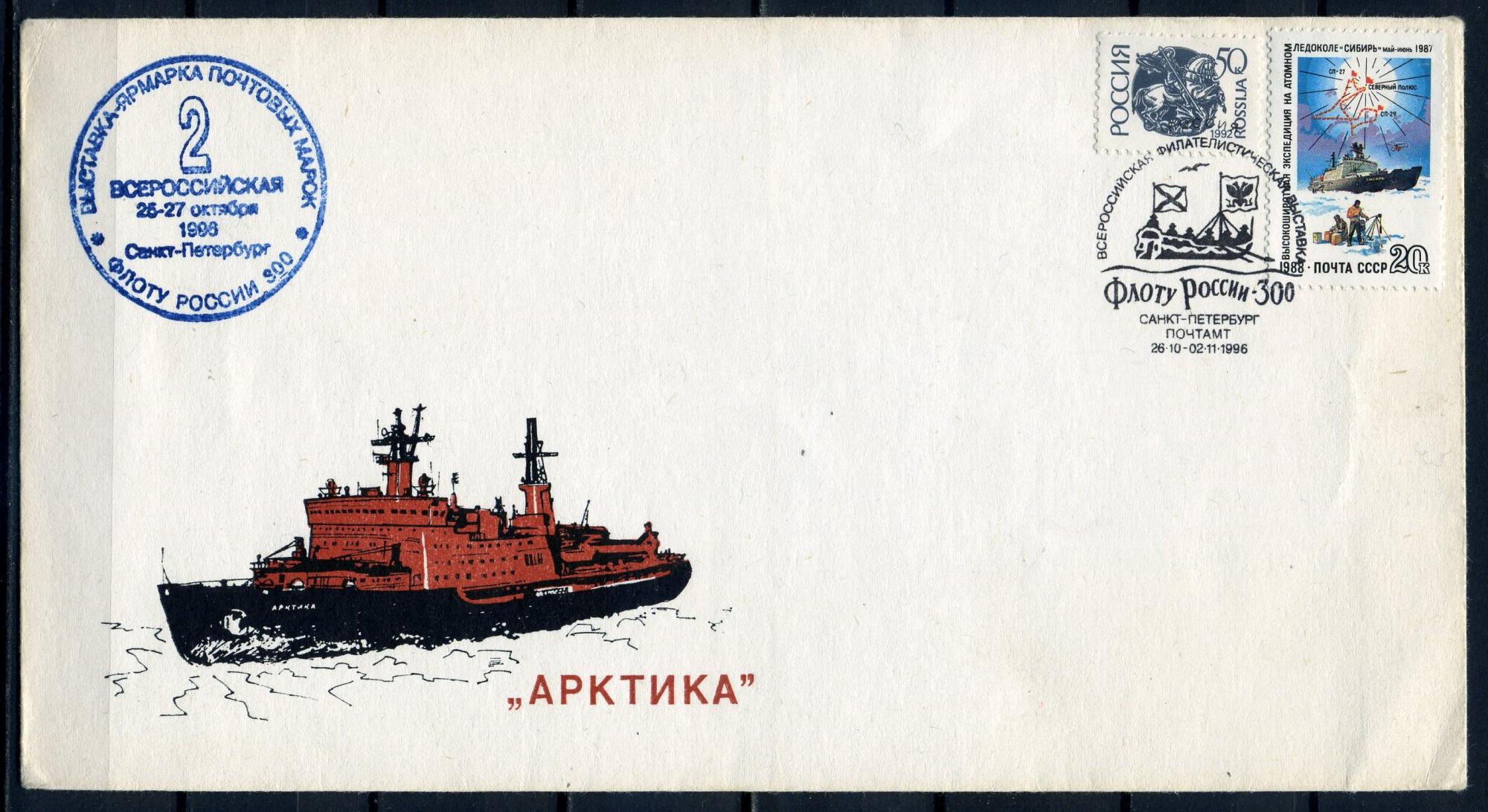 Конверт с марками и СГ. Россия 1996 г. Атомный ледокол "Арктика. Флоту России 300 лет. Тир. 1000 экз.