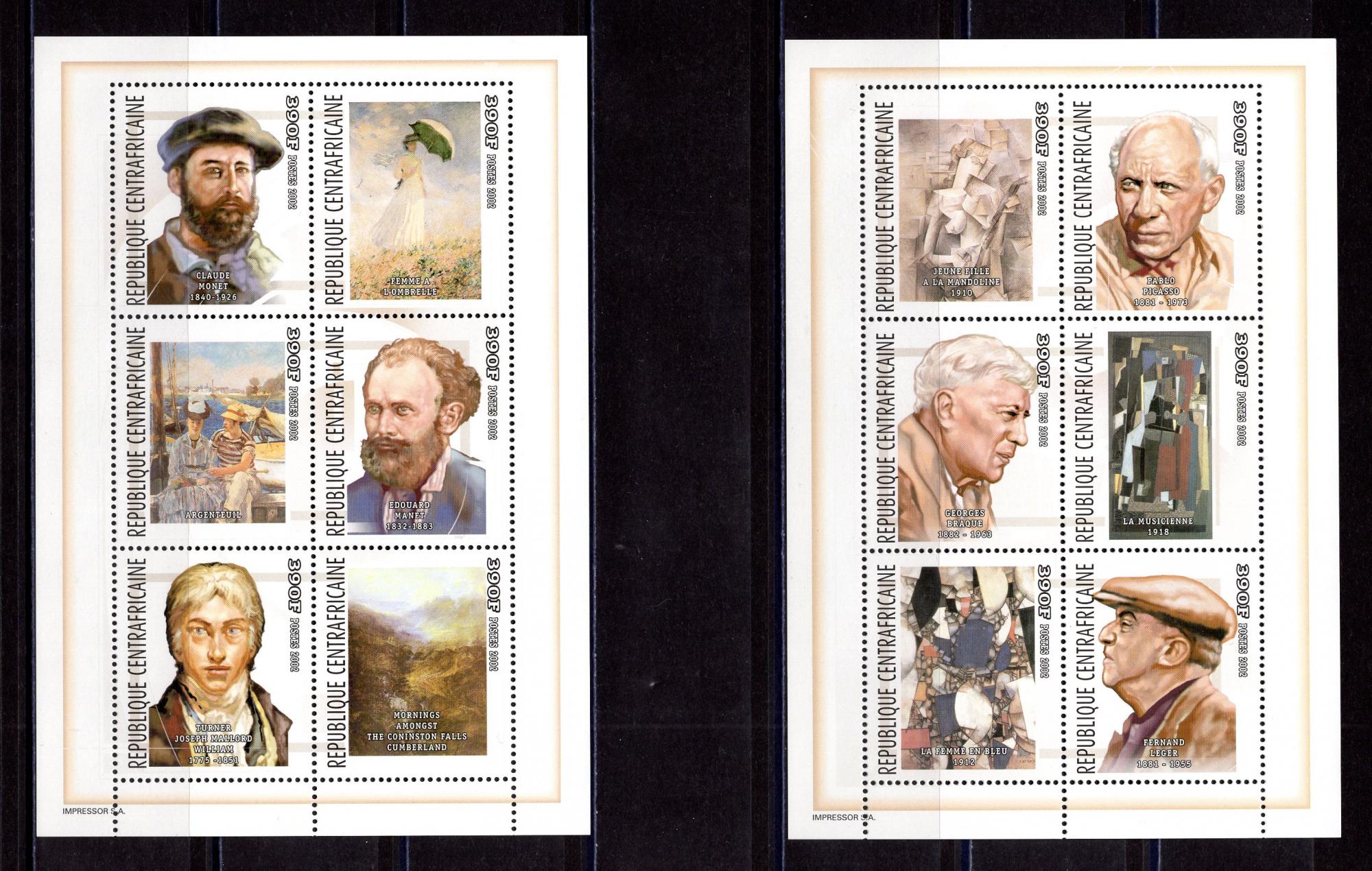 Почтовые марки. ЦАР. 2002г. Европейская Живопись. 2 МЛ. №2829-2840.