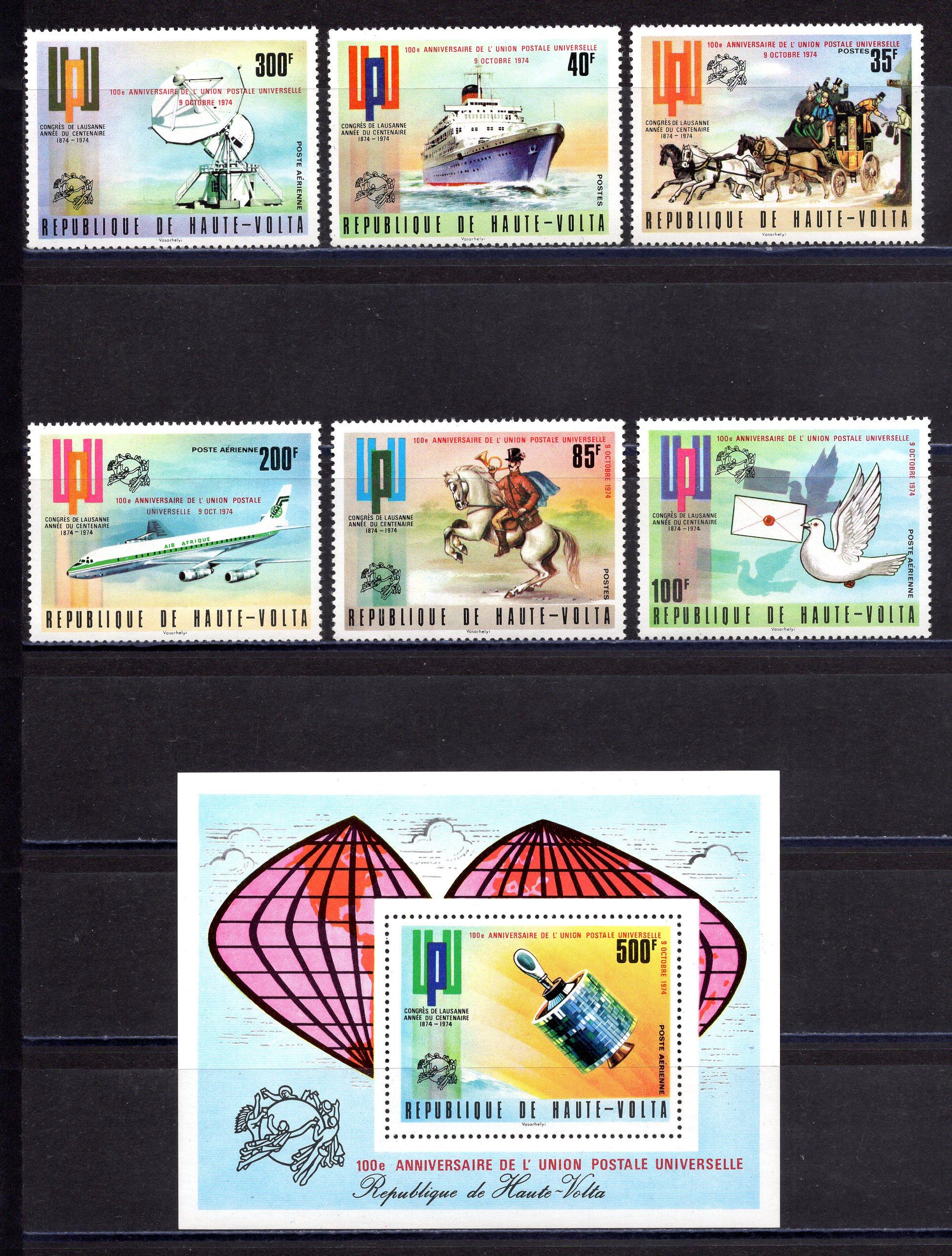 Почтовые марки. Верх.Вольта. 1974г. UPU ВПС. №517-522, Блок №26.