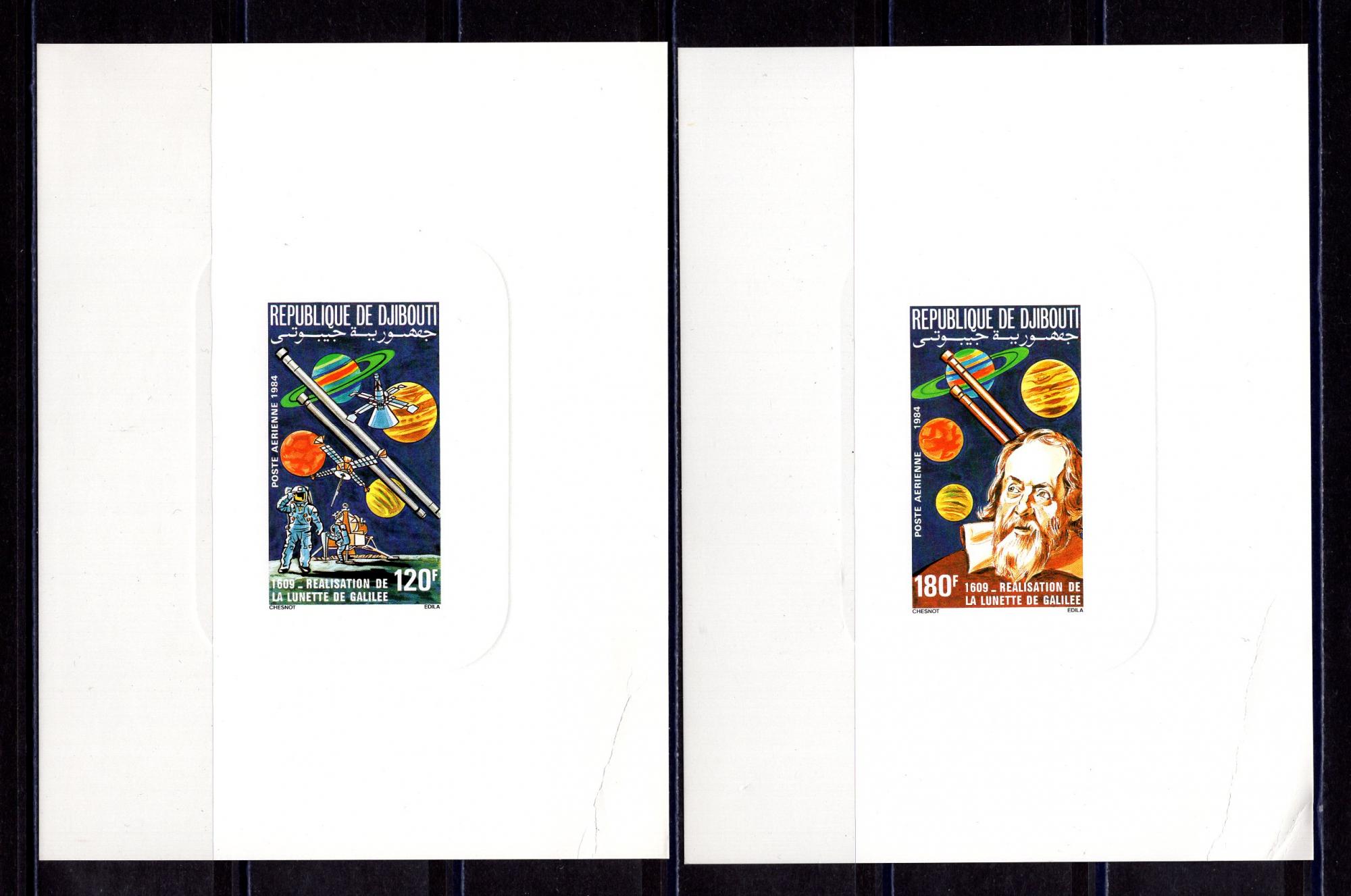 Почтовые марки. Джибути. 1984г. Космос. Галилей. №420-421. Люкс-Блоки. Тиснение. (См.сост. угол снизу)