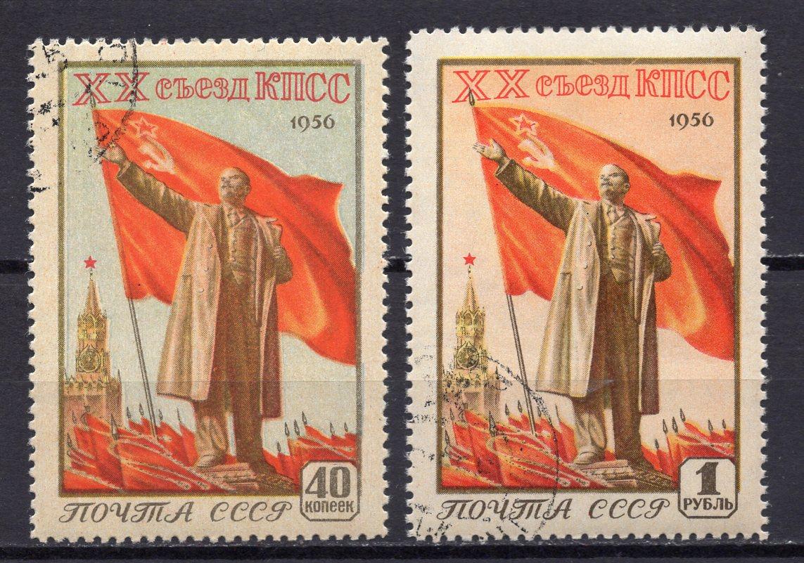 Почтовые марки. СССР. 1956г. Съезд КПСС. Свой клей. №1865-1866.