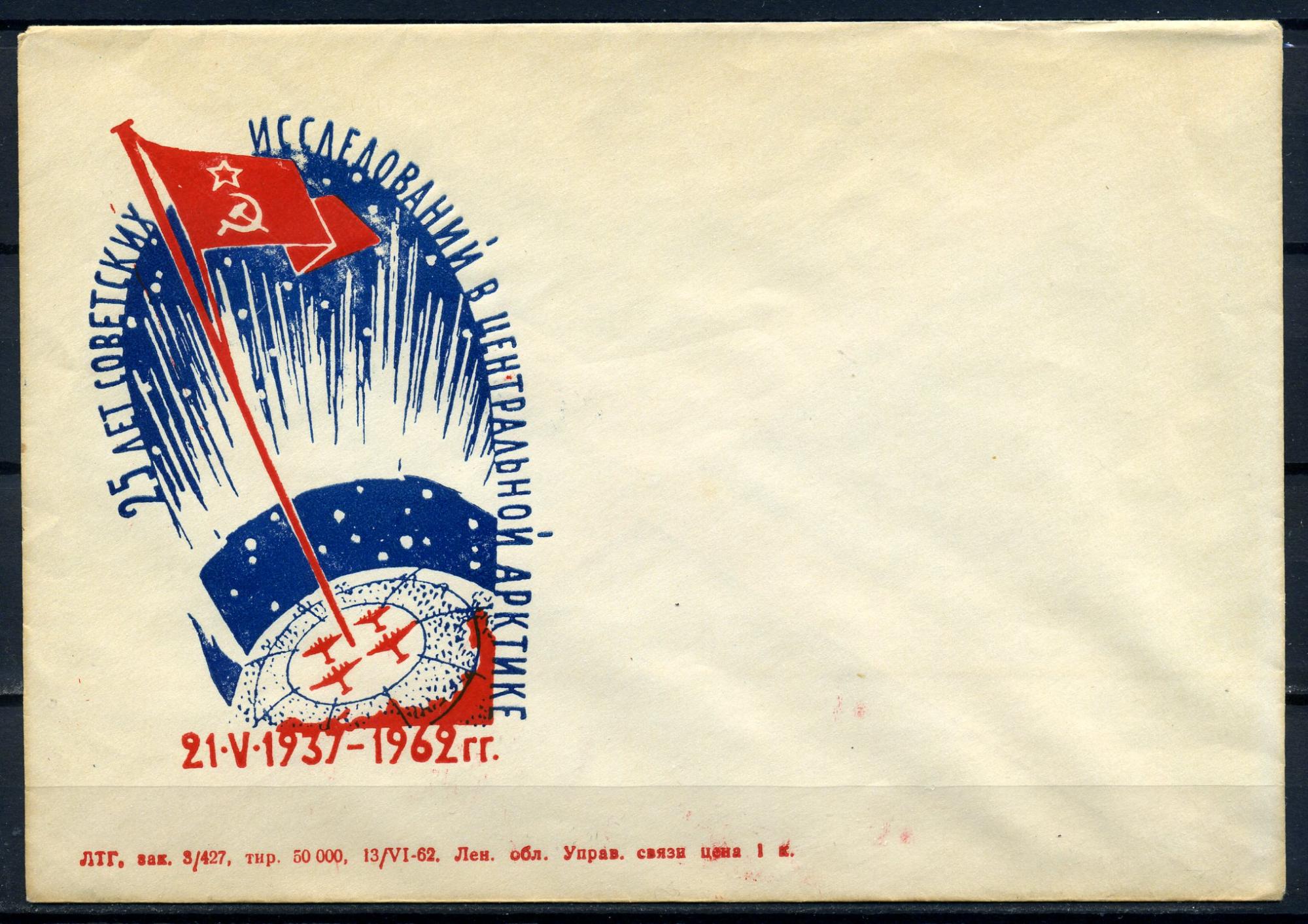 Немаркированный конверт. СССР 1962 г. 25 лет Советских исследований в Центральной Арктике. КО.