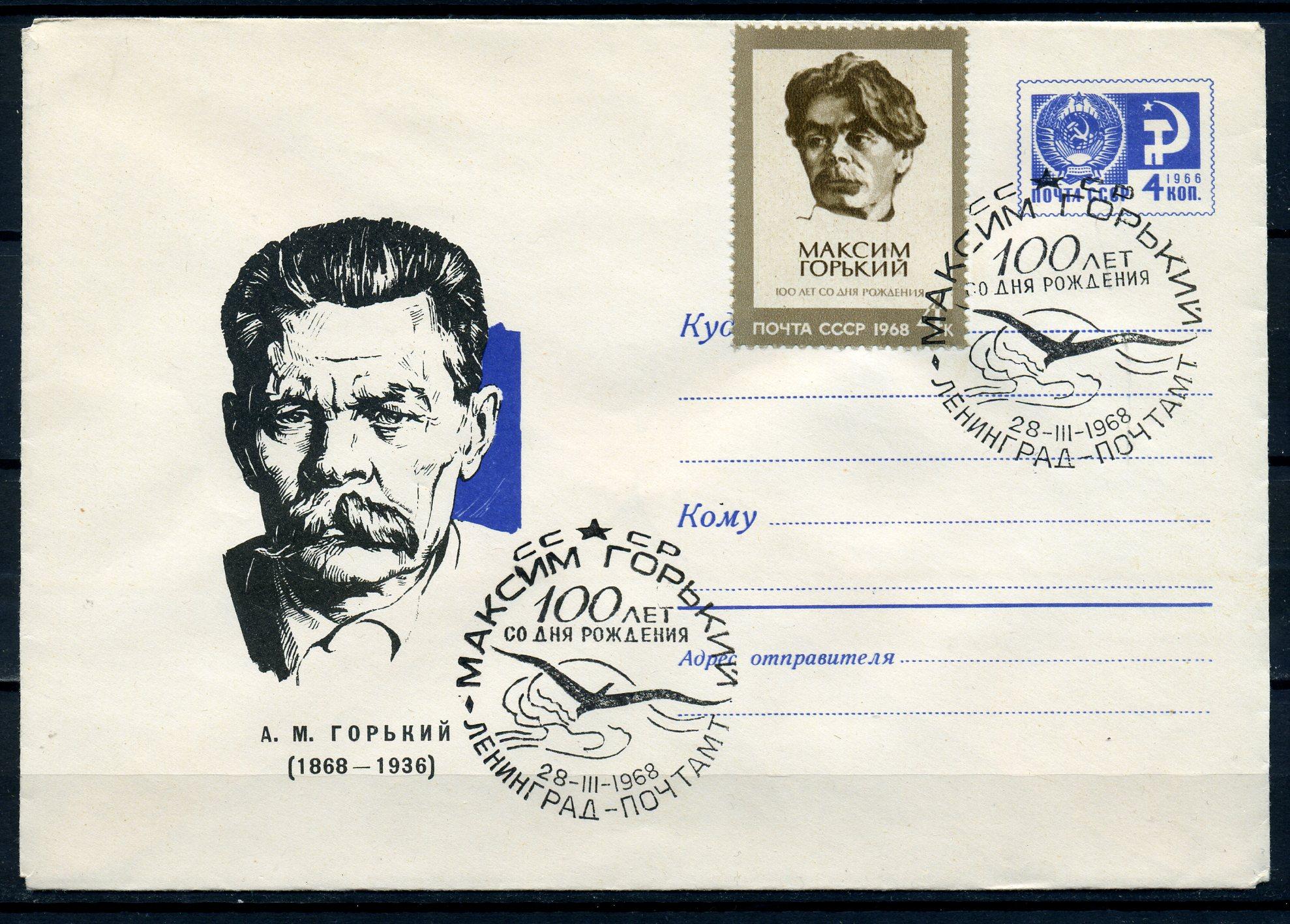 ХМК с маркой и СГ. СССР 1967г. А.М. Горький. СГ - 1968 г. КО.