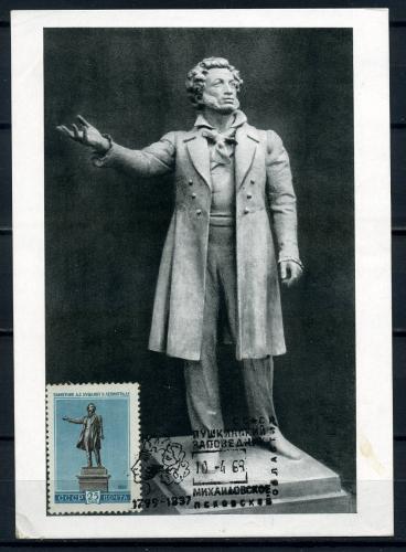 Картмаксимум. СССР 1968 г. Памятник А.С. Пушкину.