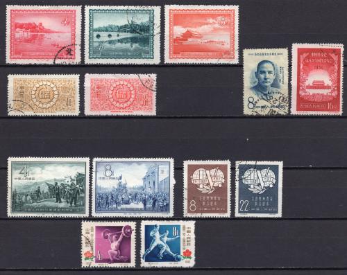 Почтовые марки. КНР, 1956-1957. №314-315, 318, 323-324, 327, etc. Здания бывшего императорского города Пекин. Годовщина Народно-освободительной армии. (14,2 е)
