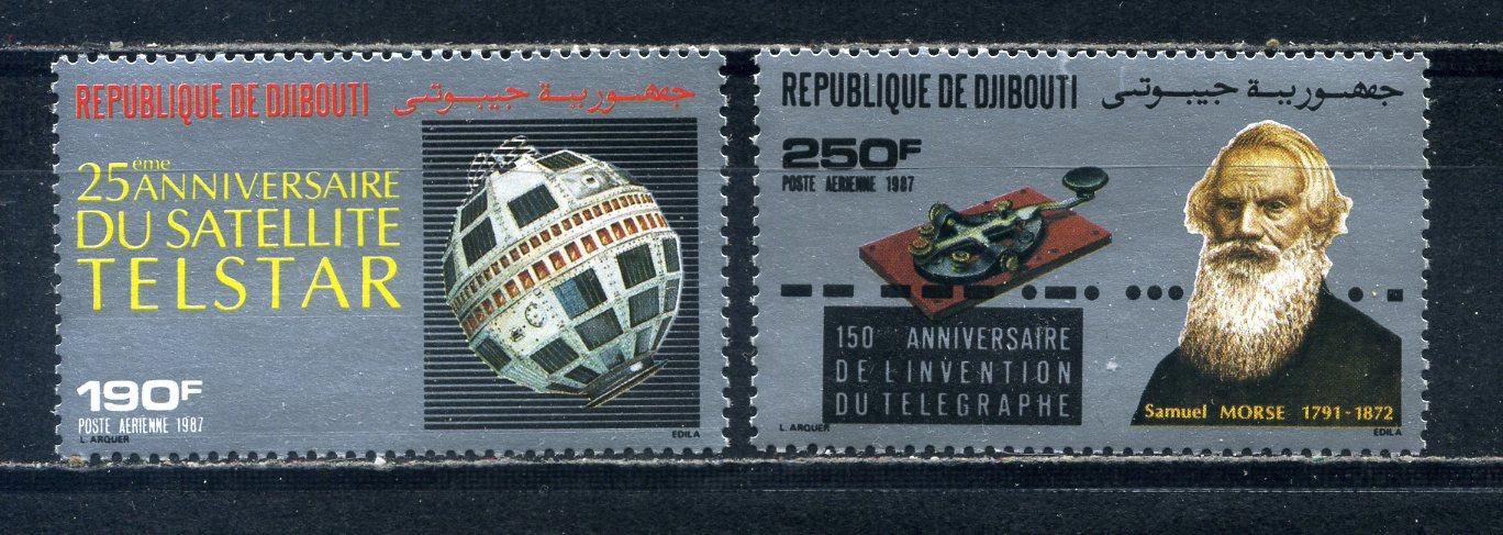 Почтовые марки. Джибути. 1987г. Телеком. Космос. №498-499 (Mi: 7.00 Евро).