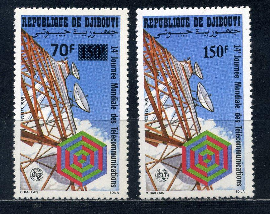 Почтовые марки. Джибути. 1982 + 1989гг. Космос. Телеком. Надпечатка. №337.520 (Mi: 6.00 Евро).