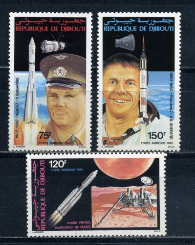 Почтовые марки. Джибути. 1981г. Космос. Гагарин. №293-295.