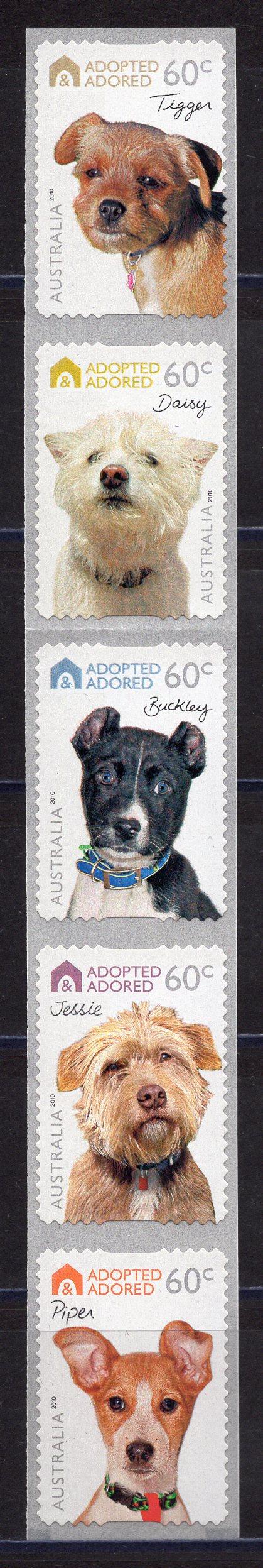 Почтовые марки. Австралия. 2010г. Собаки. Самоклейки. №3415-3419.