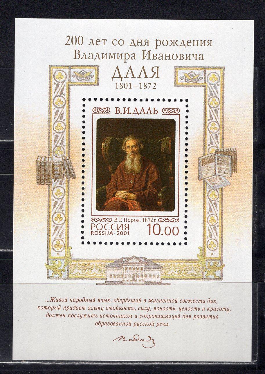 Почтовые марки. Россия. 2001г. Портрет Даля. Блок №36.