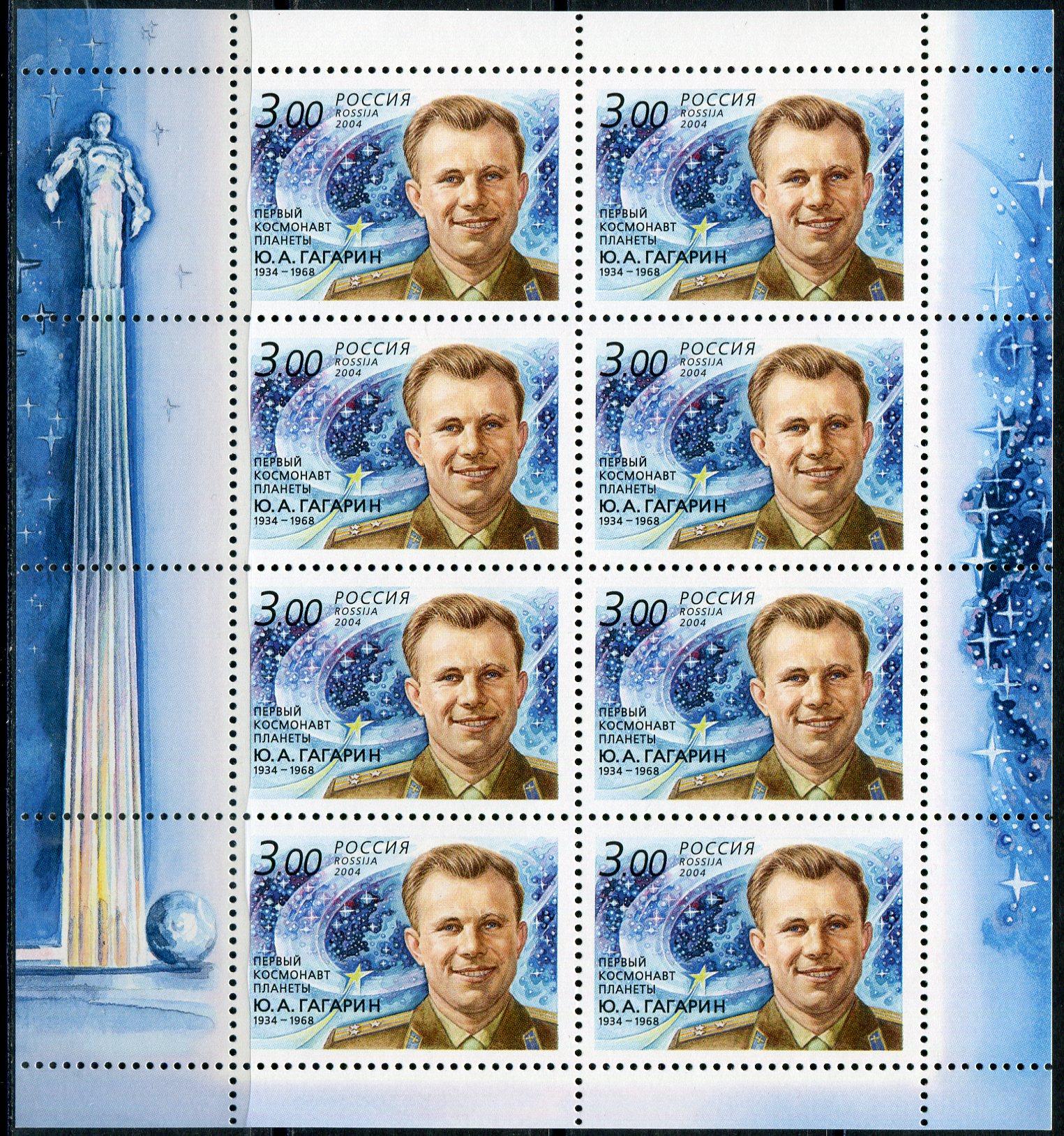 Почтовые марки. Россия. 2004г. Космос. Гагарин. МЛ. №916 (Кат.: 1600р.).