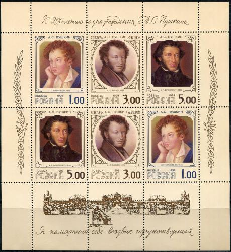 Почтовые марки. Россия. 1999. Пушкин. МЛ. № 504-506