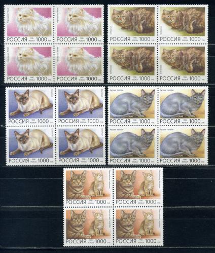 Почтовые марки. Россия. 1996г. Кошки. №266-270. КБ.
