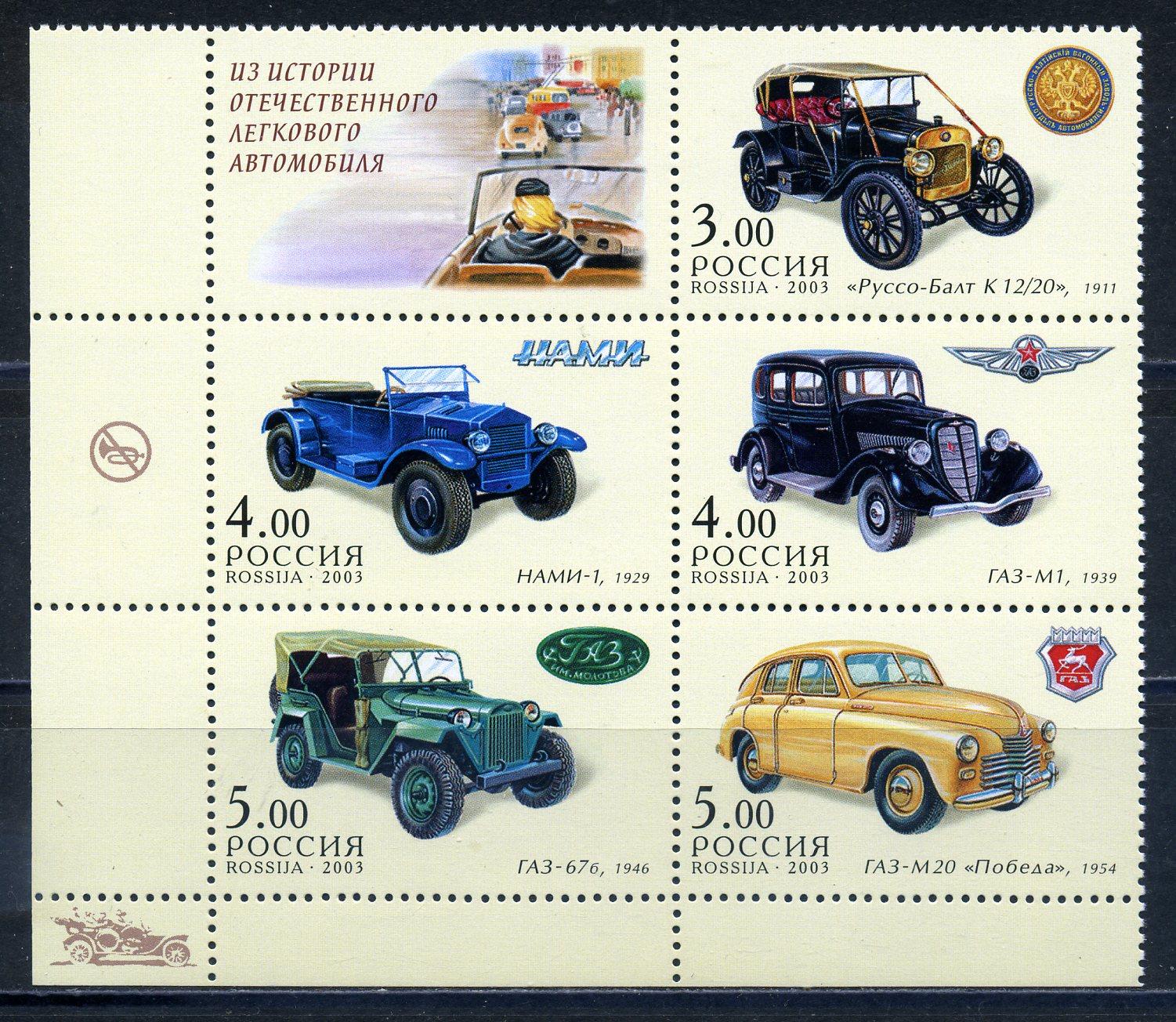 Почтовые марки. Россия 2003 г. Автомобили. № 889-893.