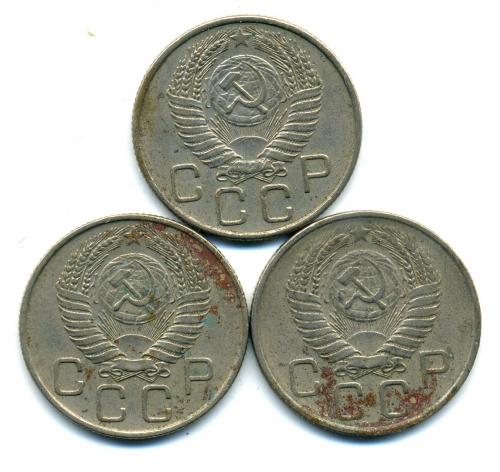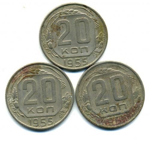 Монеты СССР. 20 копеек 1955 г. 3 шт.