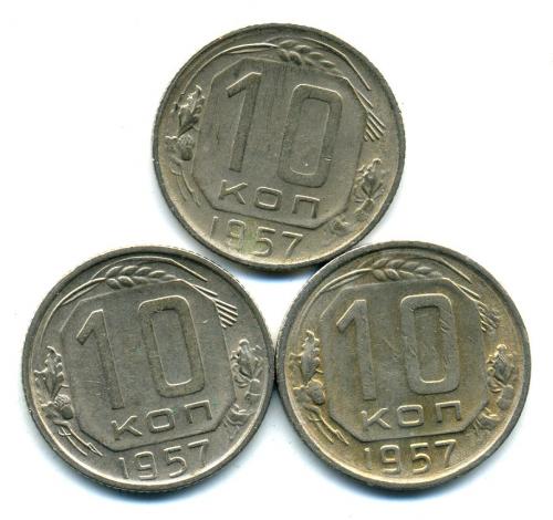 Монеты СССР. 10 копеек 1957 г. 3 шт.