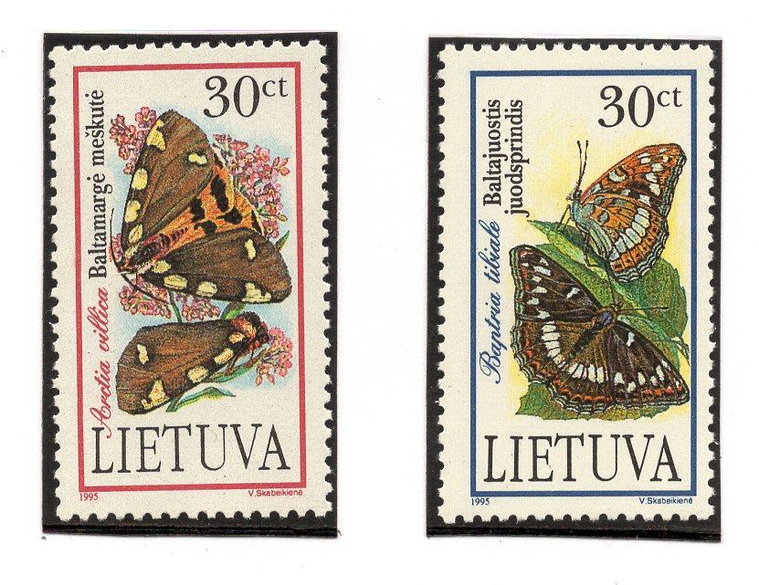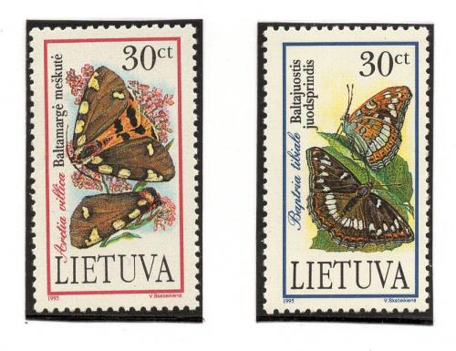 Почтовые марки. Литва, 1995 г. Бабочки. №589-590.