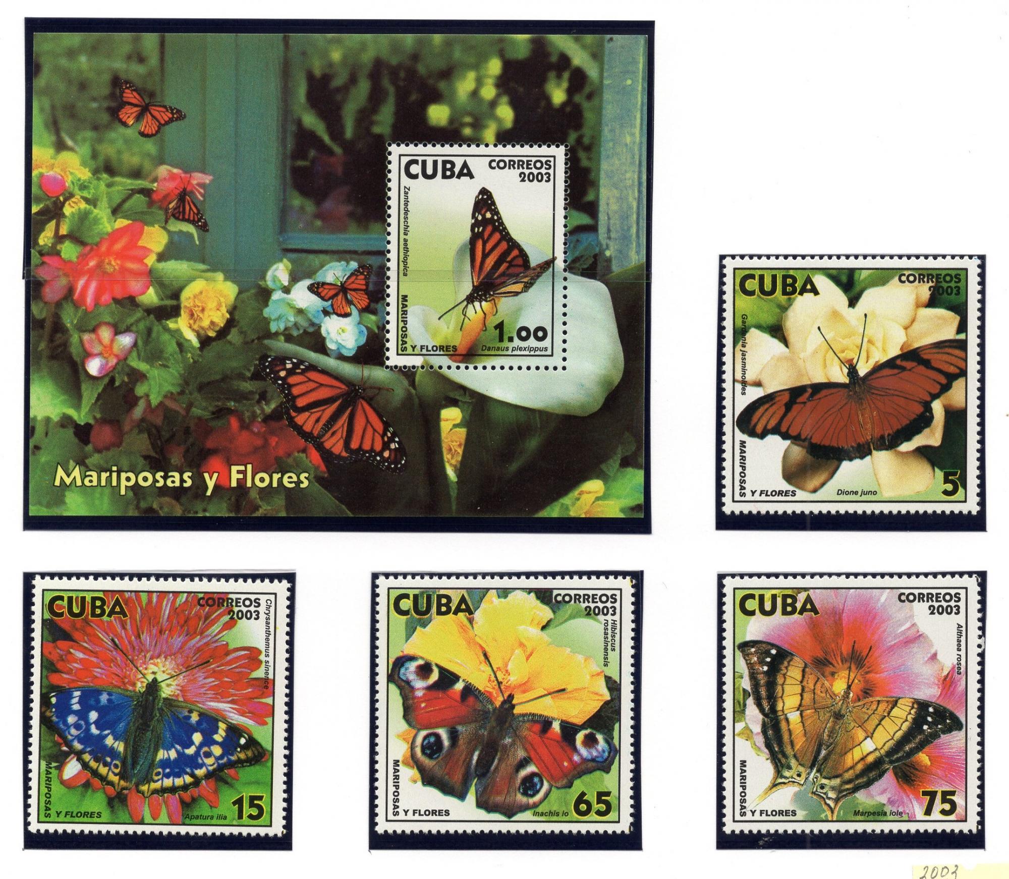 Почтовые марки. Куба, 2003 г. Бабочки. №4544-4547. Бл. 185.