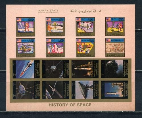 Почтовые марки. Аджман. 1973г. Космос. Аполлон. МЛ(мини-комби). №2677В-2684В.2789В-2796В. Беззубц. (Mi: 36.00 Евро)