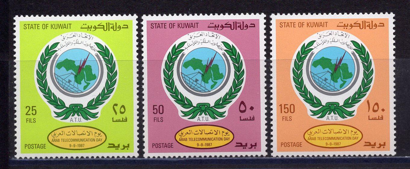 Почтовые марки. Кувейт. 1987г. Телеком. №1135-1137.
