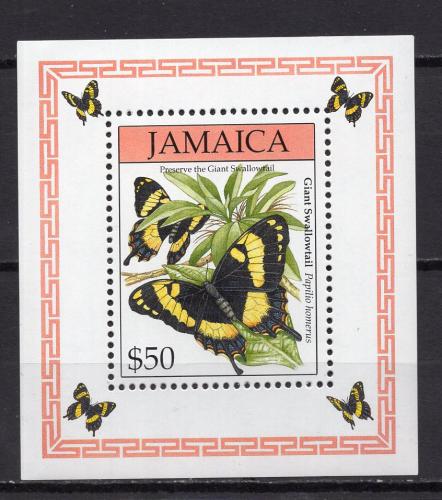 Почтовые марки. Ямайка, 1994 г. Бабочки. Бл. 40 (13,0 е)
