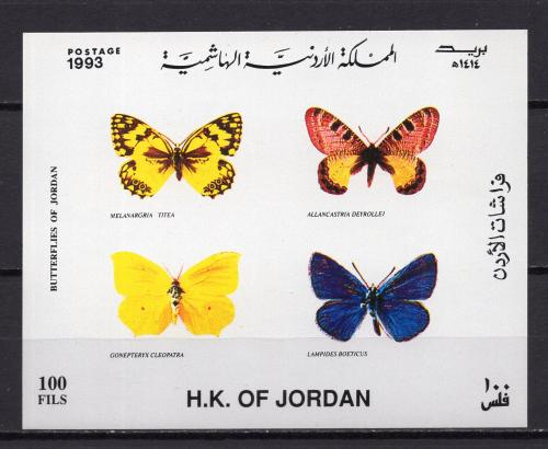 Почтовые марки. Иордания, 1993 г. Бабочки. Бл. 70 (25,0 е)