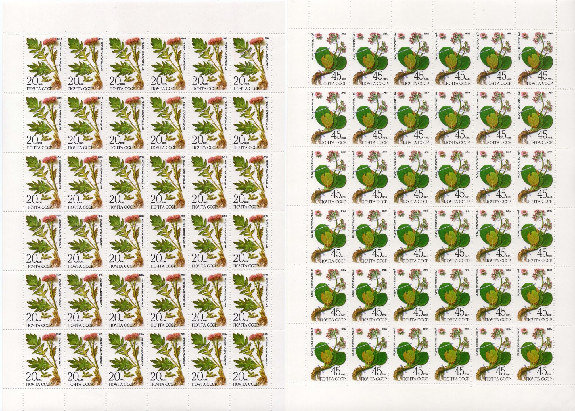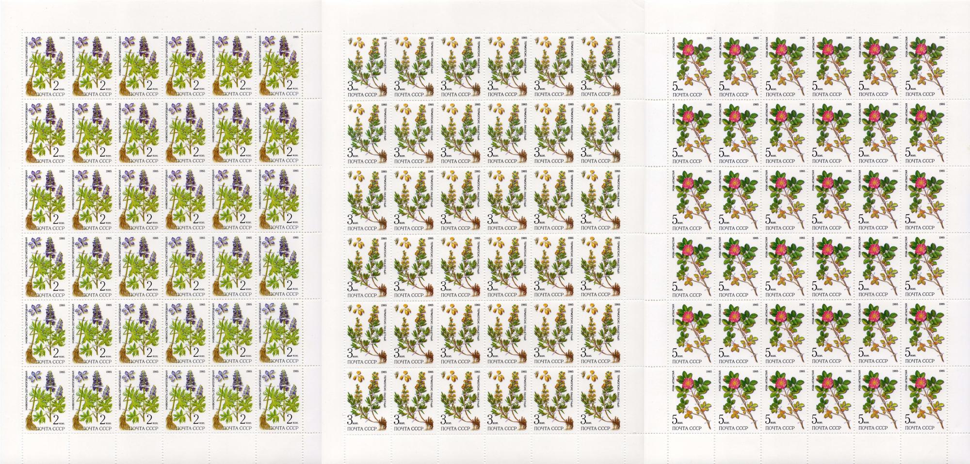 Почтовые марки. СССР, 1985 г. Лекарственные растения. №5649-5653. (1500 руб.)