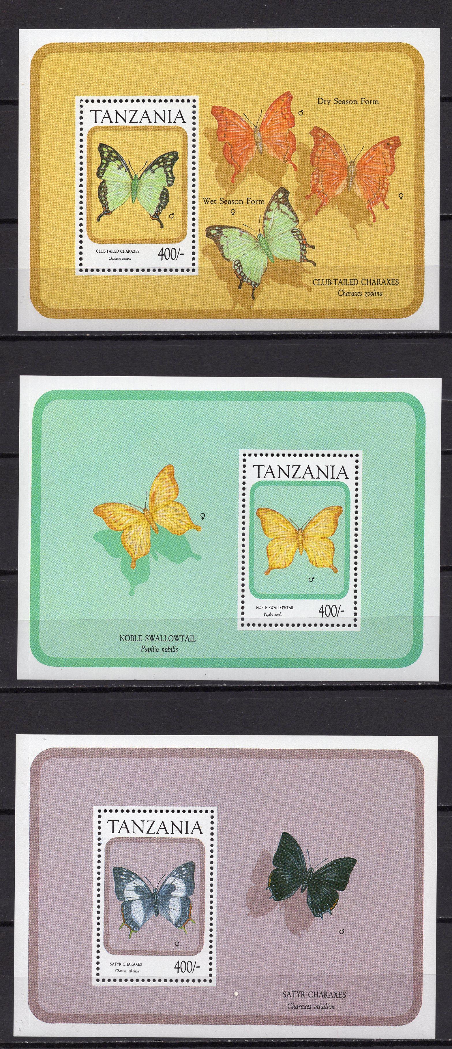 Почтовые марки. Танзания, 1991 г. Бабочки. Бл. 155-157. (21,0 е)