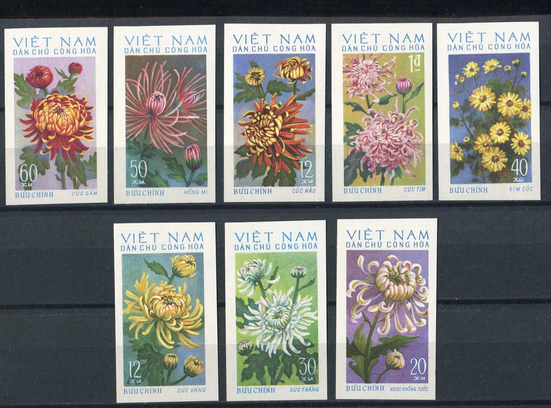 Почтовые марки. Вьетнам, 1974 г. №763-770 B. Хризантемы. Цветы. Беззуб.