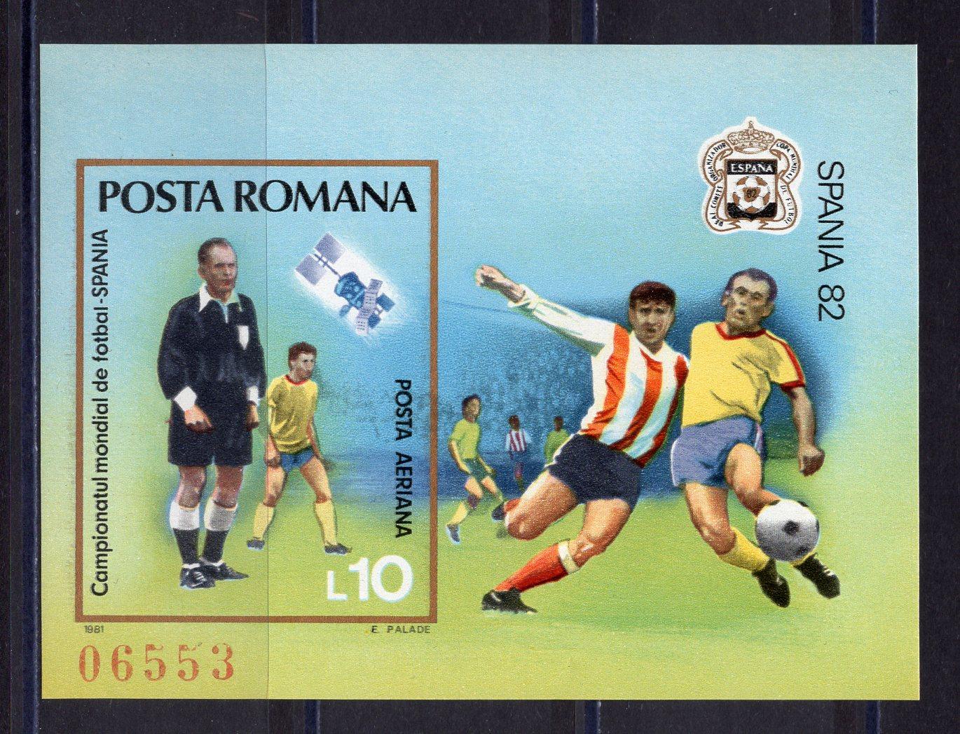 Почтовые марки. Румыния. 1981г. Футбол. Блок №185в. Беззубц. (Невыкупленный лот).