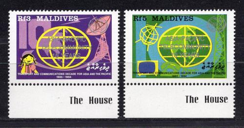 Почтовые марки. Мальдивы. 1988г. Связь. Спутник. №1337-1338. Надпечатка.