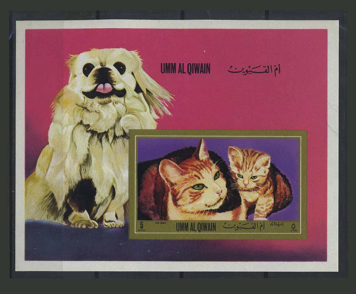 Почтовые марки. Умм-Эль-Кайвайн. 1972г. Блок №55в. Беззубц. Кошки. Собаки.