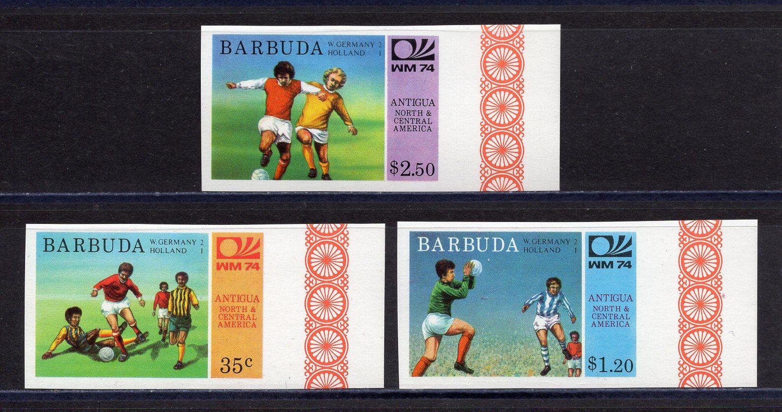 Почтовые марки. Барбуда. 1974. Футбол. №175-177В. Беззубц.