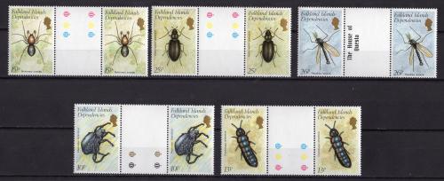 Почтовые марки. Фолклендские о-ва, 1982. №107-111. Насекомые. Гаттер-пары. (без первой марки).