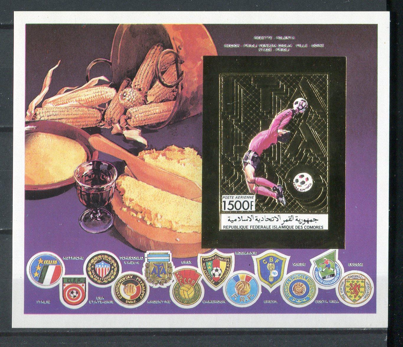 Почтовые марки. Коморы, 1989 г. Футбол. Бл. 324 В. Фольга, золото. Беззуб. (Mi: 20.00 Е)