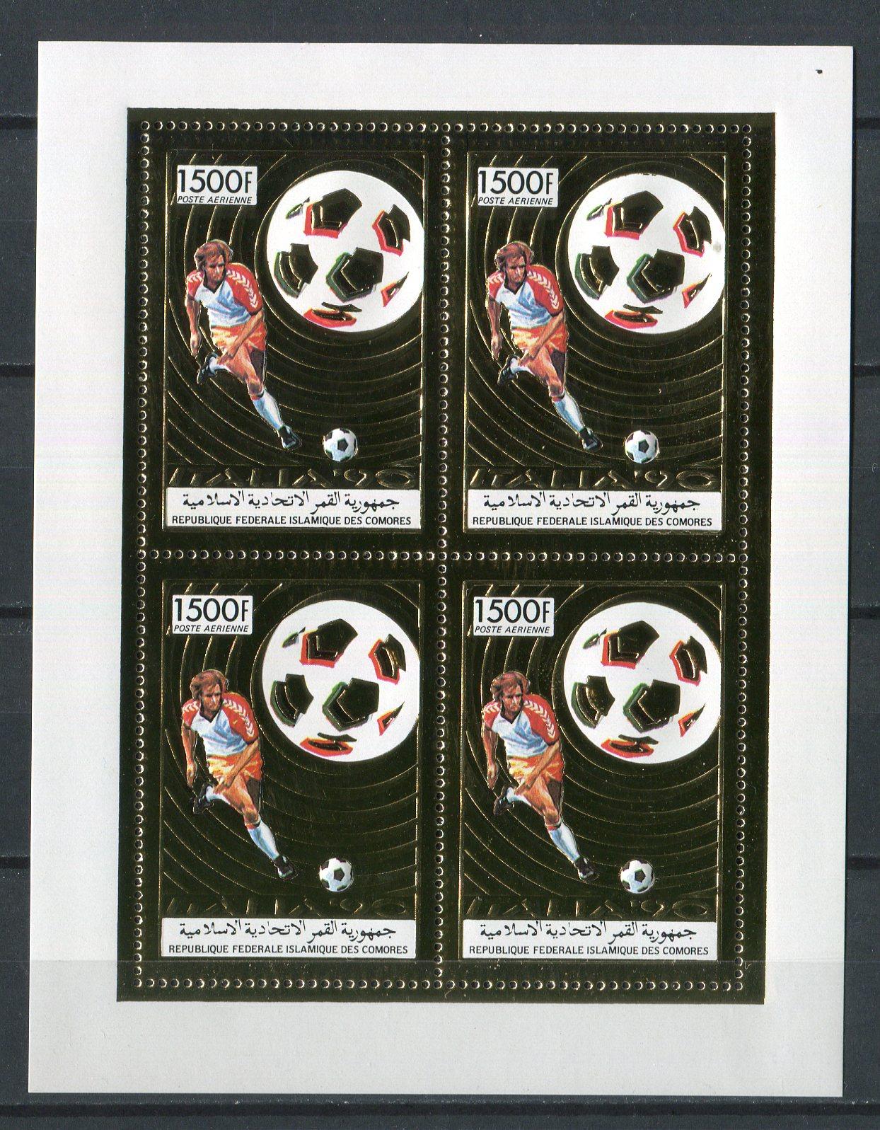 Почтовые марки. Коморы, 1989 г. Футбол. № 927 КБ. Фольга, золото. МЛ. (Mi: 52.00 Е)