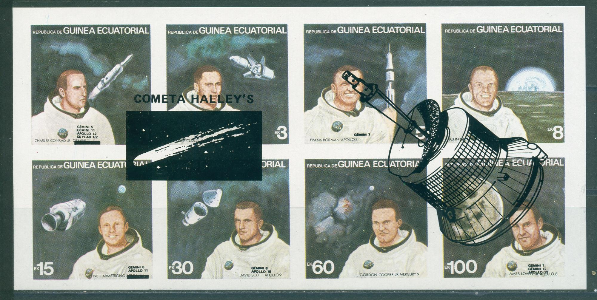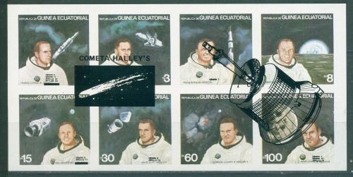Почтовые марки. Экваториальная Гвинея. 1978г. Космос. Комета Галлея. Надпечатка чёрная. №1411в-1418в. Беззубц.