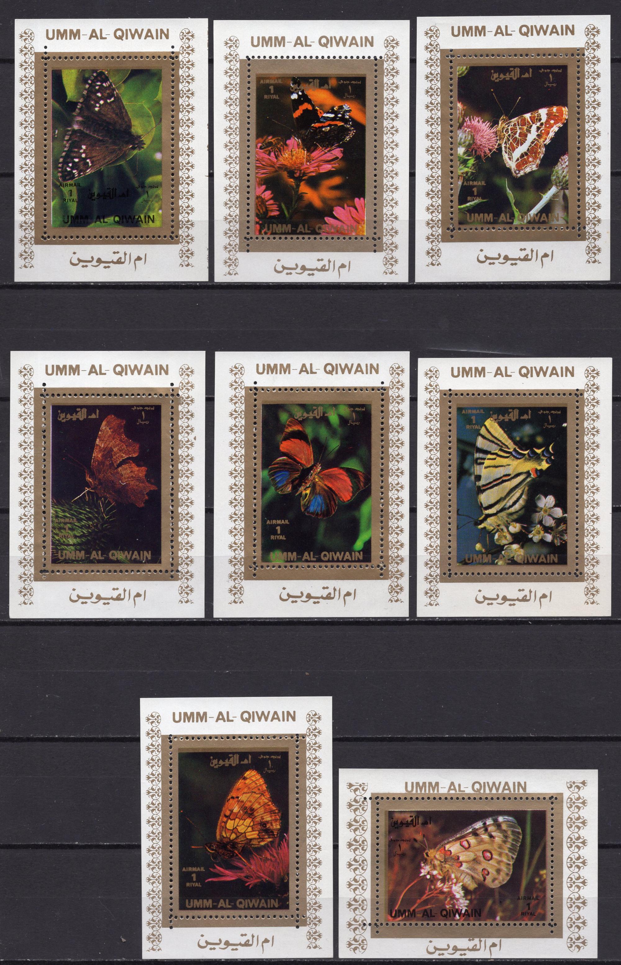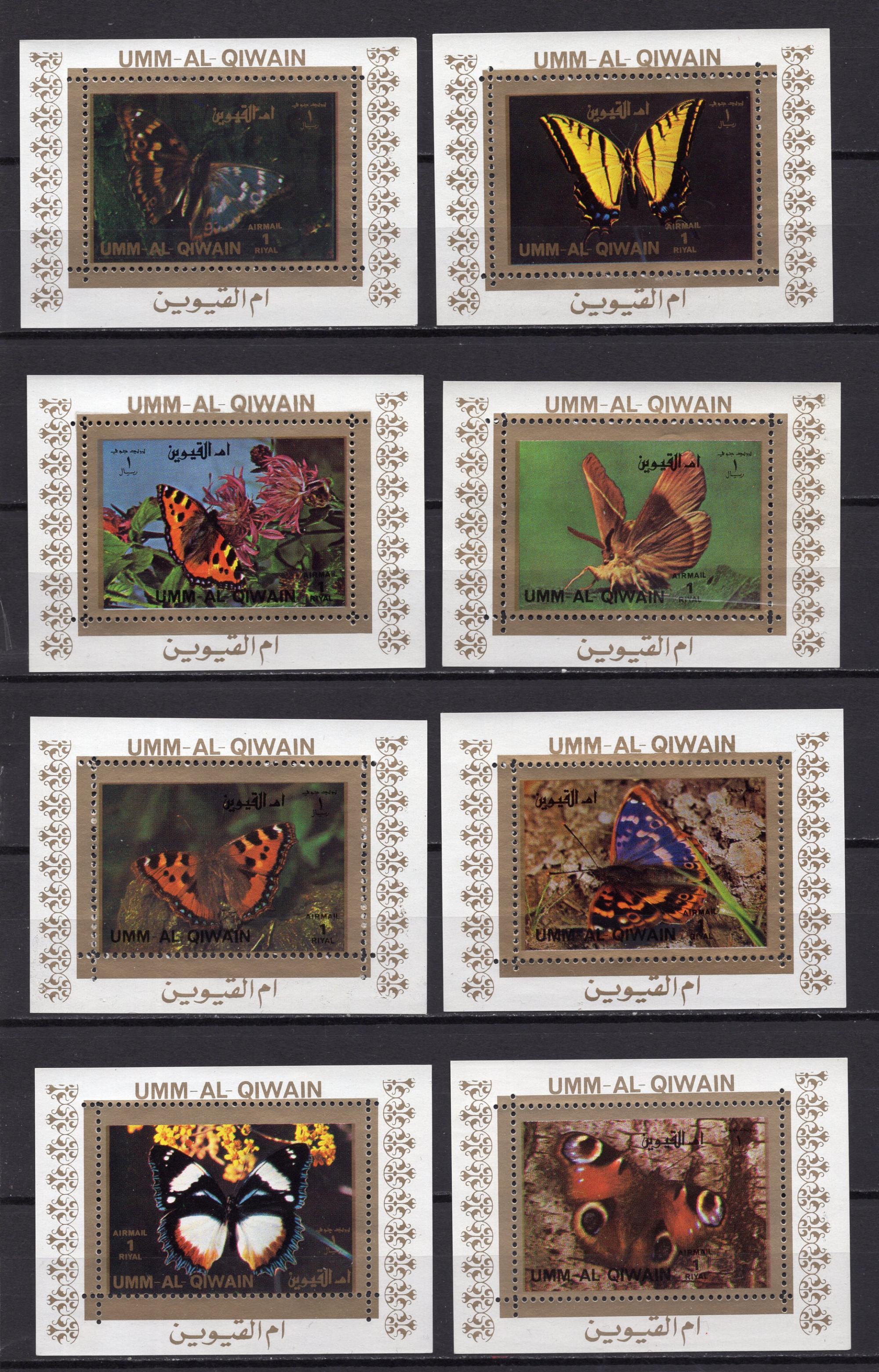 Почтовые марки. Умм-эль-Кайвайн. 1972 г. Бабочки. Люкс-блоки. Комплект. Зубц. Без клея. №1498-1513.