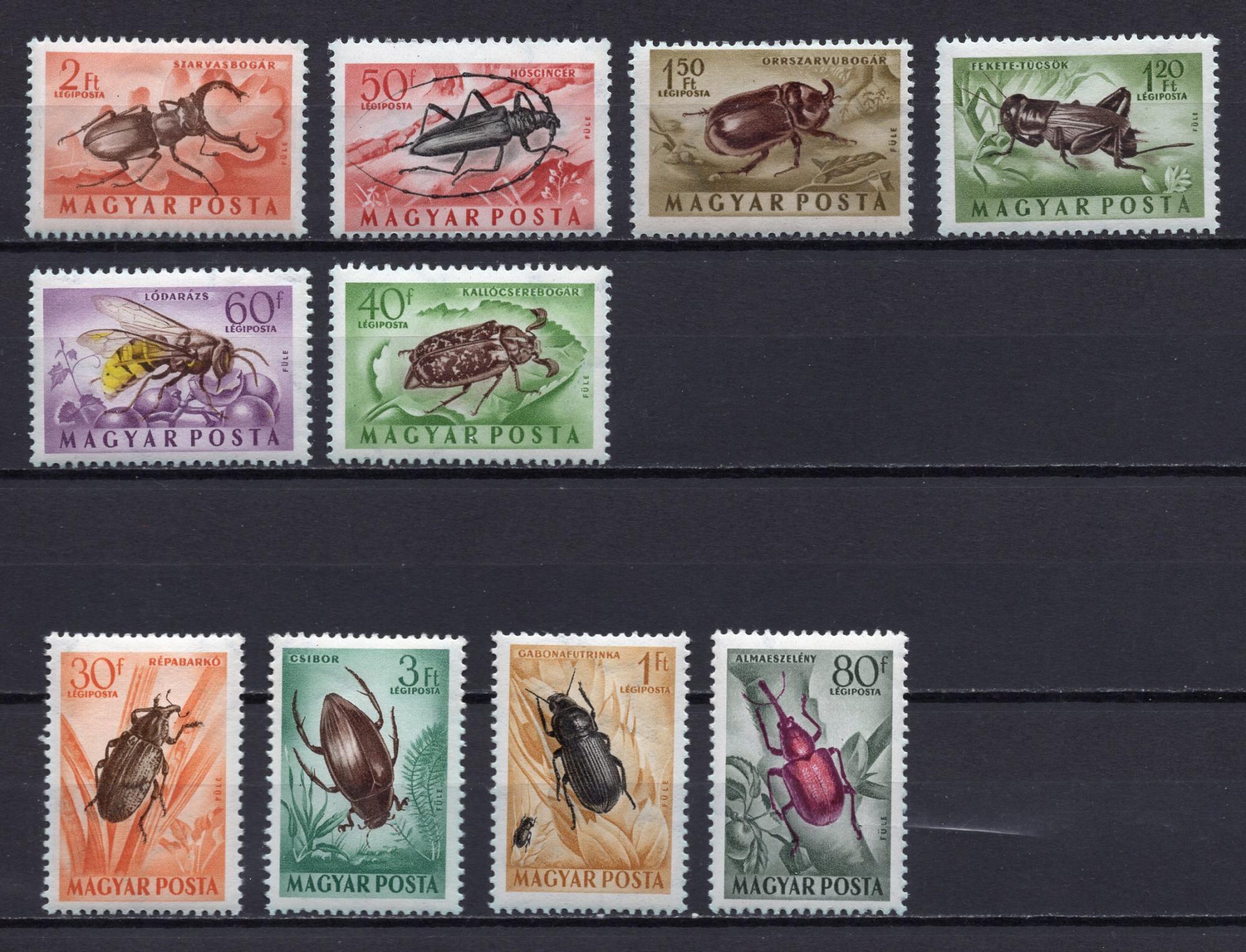 Почтовые марки. Венгрия, 1954 г. Насекомые. №1354-1363.