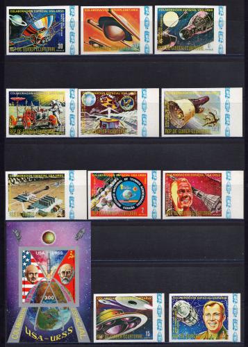 Почтовые марки. Экваториальная Гвинея. 1975г. Космос. СССР-США. №А587-А597. Блок №173. Беззубц.(Mi: 12.00 Евро)