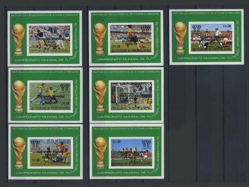 Почтовые марки. Сан-Томе. 1979 г. № Бл. 25-31В. Футбол. Надпеч. Комплект.