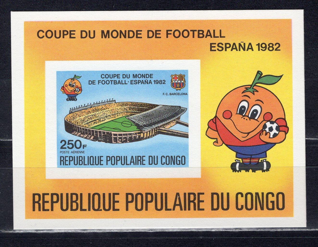 Почтовые марки. Конго. 1982г. Футбол. Блок №23в. На картоне. Беззубц.