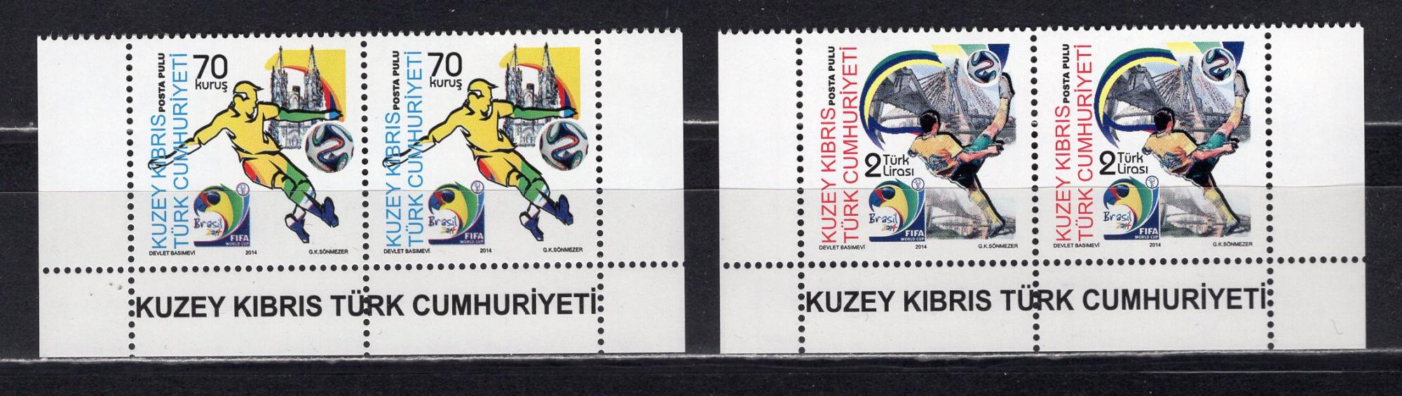 Почтовые марки. Тур.Кипр. 2014г. Футбол. №789-790. Сцепки.