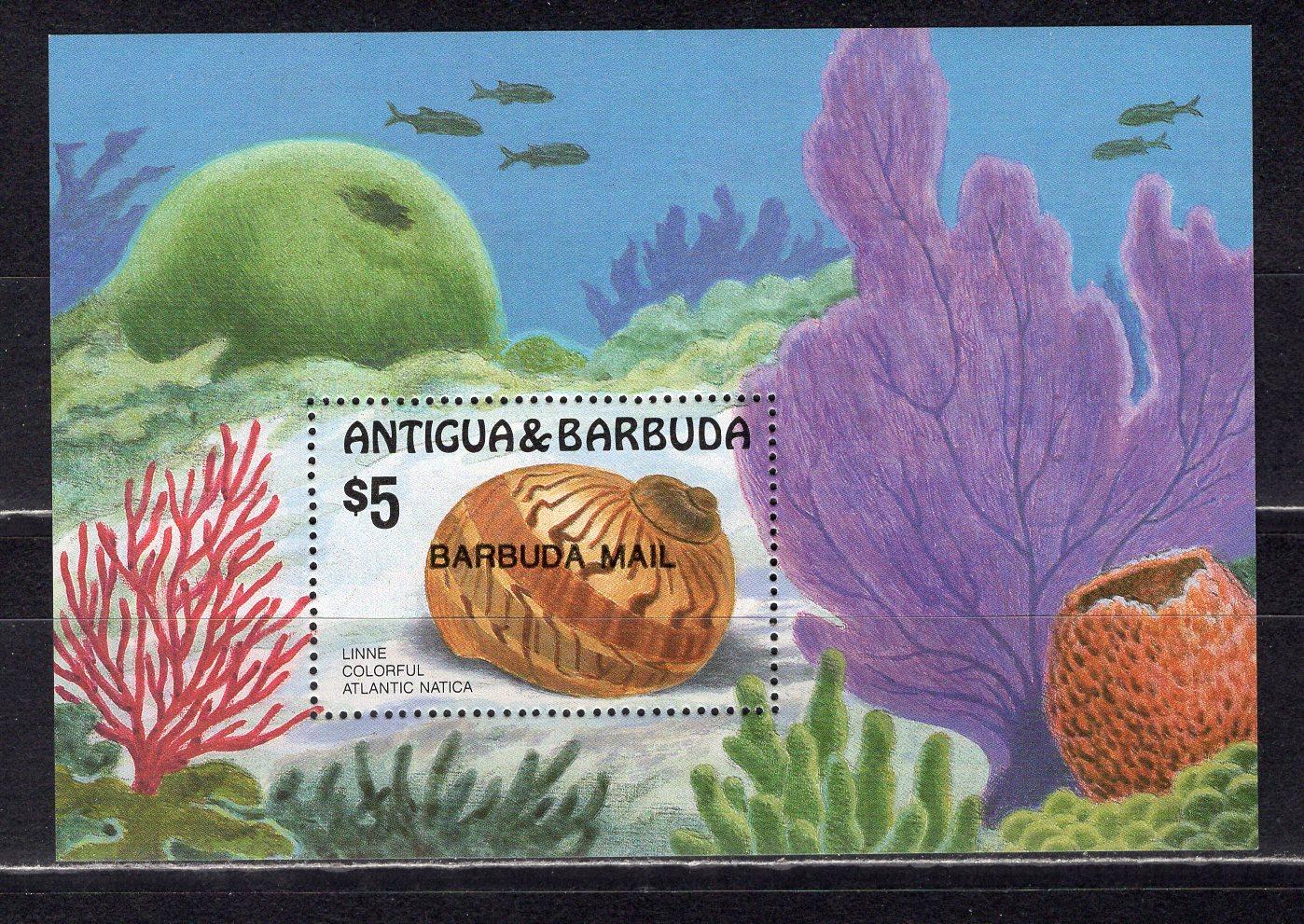 Почтовые марки. Барбуда. 1986г. Ракушка. Надпечатка. Блок №113.