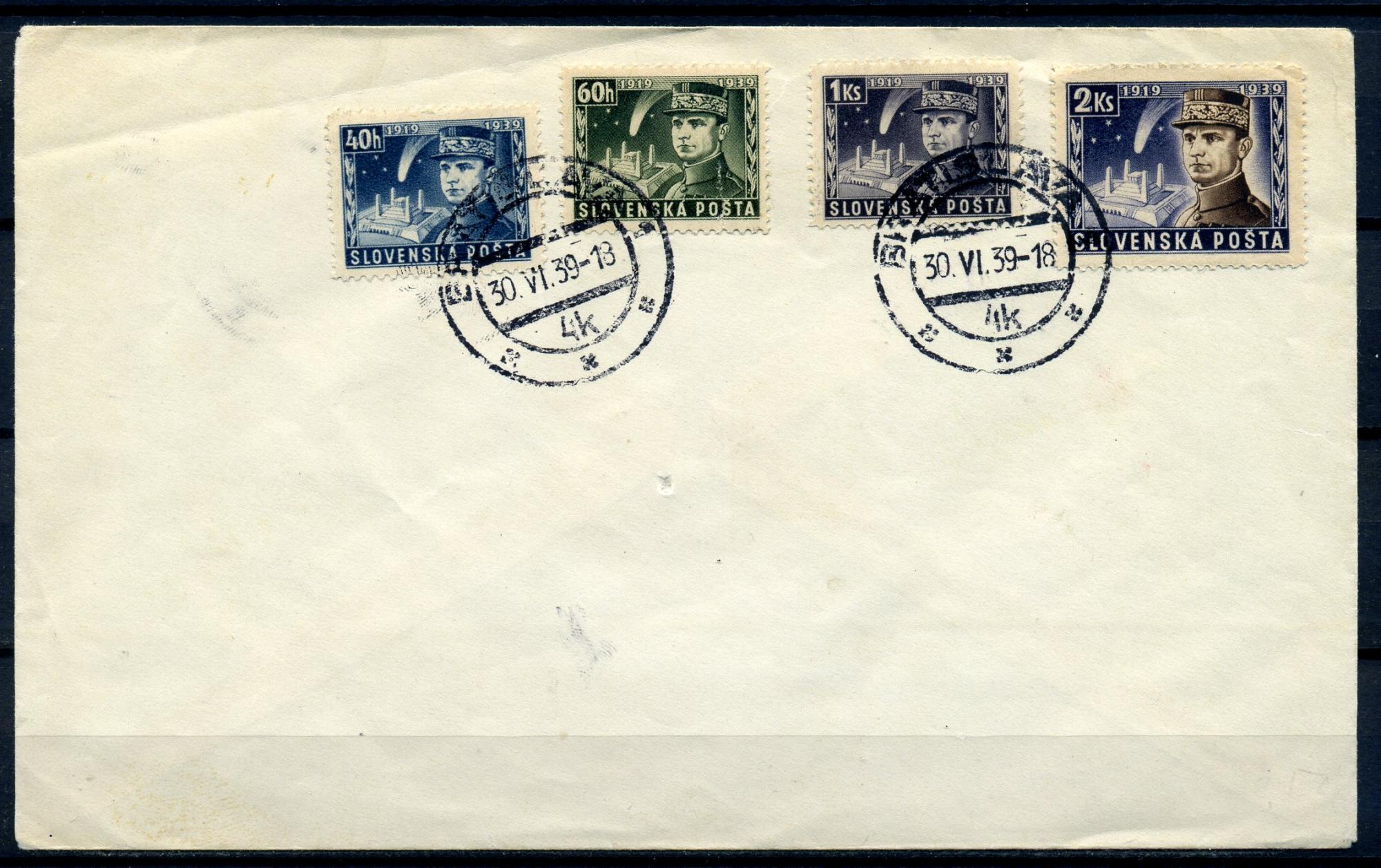 Конверт с марками и гашением. Словакия 1939 г. М.Р. Штефаник. Словацкий астроном, генерал французской армии. КО.