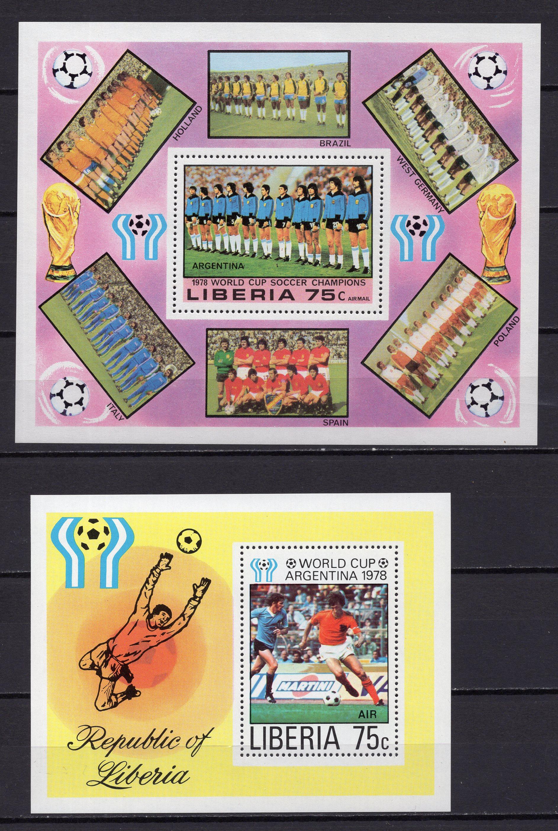 Почтовые марки. Либерия, 1978 г. Футбол. Бл. 90, 92.
