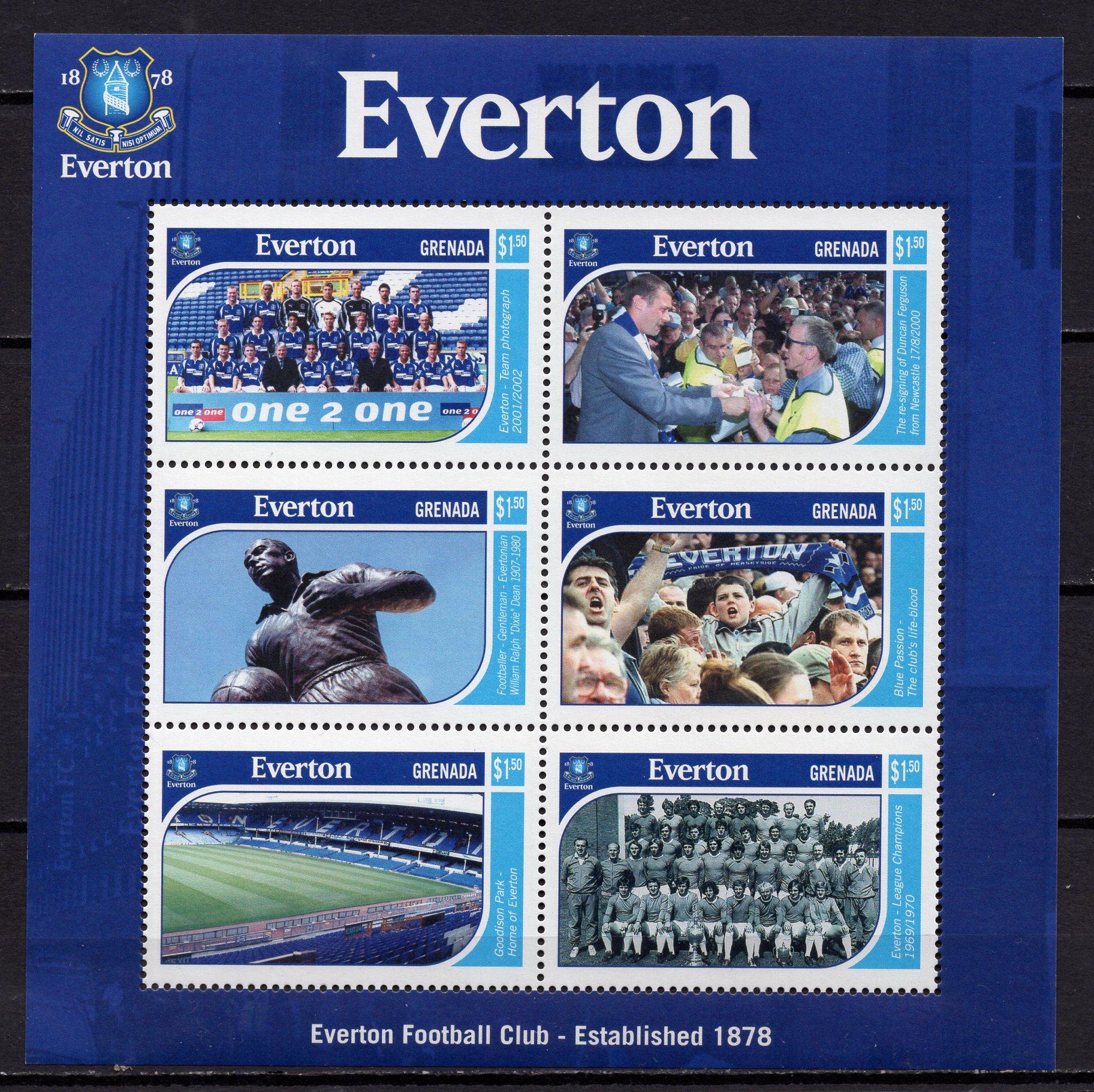 Почтовые марки. Гренада, 2001 г. Брит. футбол. Эвертон. МЛ. №4809-4814.