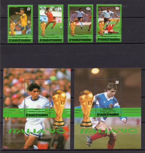 Почтовые марки. Гренада и Гренадины, 1990 г. Футбол. №1303 - 1306, Бл. 196-197. ( 21,0 е)
