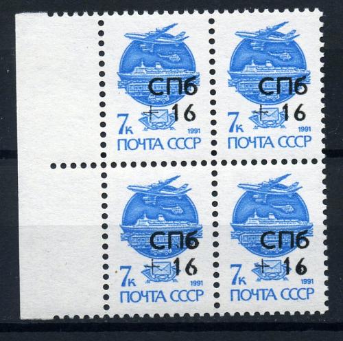 Почтовые марки. Россия. 1992г. Стандарт. Надпечатка СПб. Локальная почта. №L1. КБ.