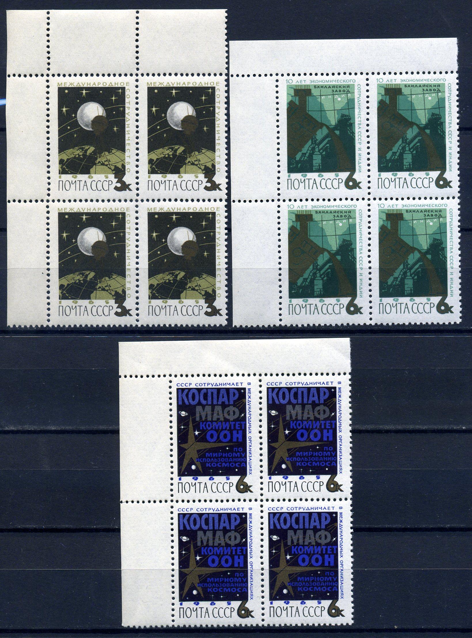 Почтовые марки. СССР 1965 г. Международное сотрудничество в космосе. № 3215-3217. КБ (Кат.: 400р.)